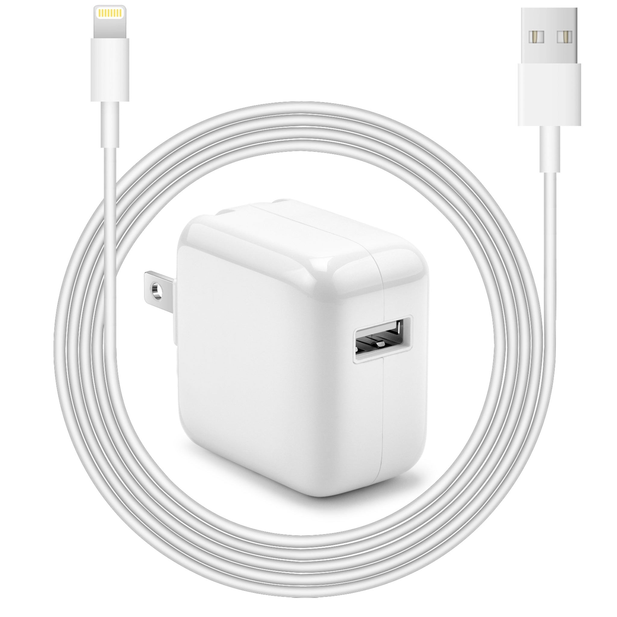 - USB FAST CHARGER FOR IPAD IPHONE- iPad iPhone Charger equipped with 12W USB power delivery wall plug, Quick-Charge USB port provides Max 12W output power, charge your device up to 2.5x faster than original 5W charger, charging your iPhone up to 50% in just 45 minutes, saving over 1hrs for you.